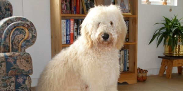 He (Wyatt) is the most awesome dog, he weighs a little under 90 pounds now and his hair has stayed pretty much white, he is sooo loving (my shadow ) and extremely smart and quite the people magnet. We can't go anywhere without being stopped by people wanting to know what kind of dog he is... he lives to chase a ball and play in the surf. He is a perfect boy off his leash and loves to visit new dogs and people.